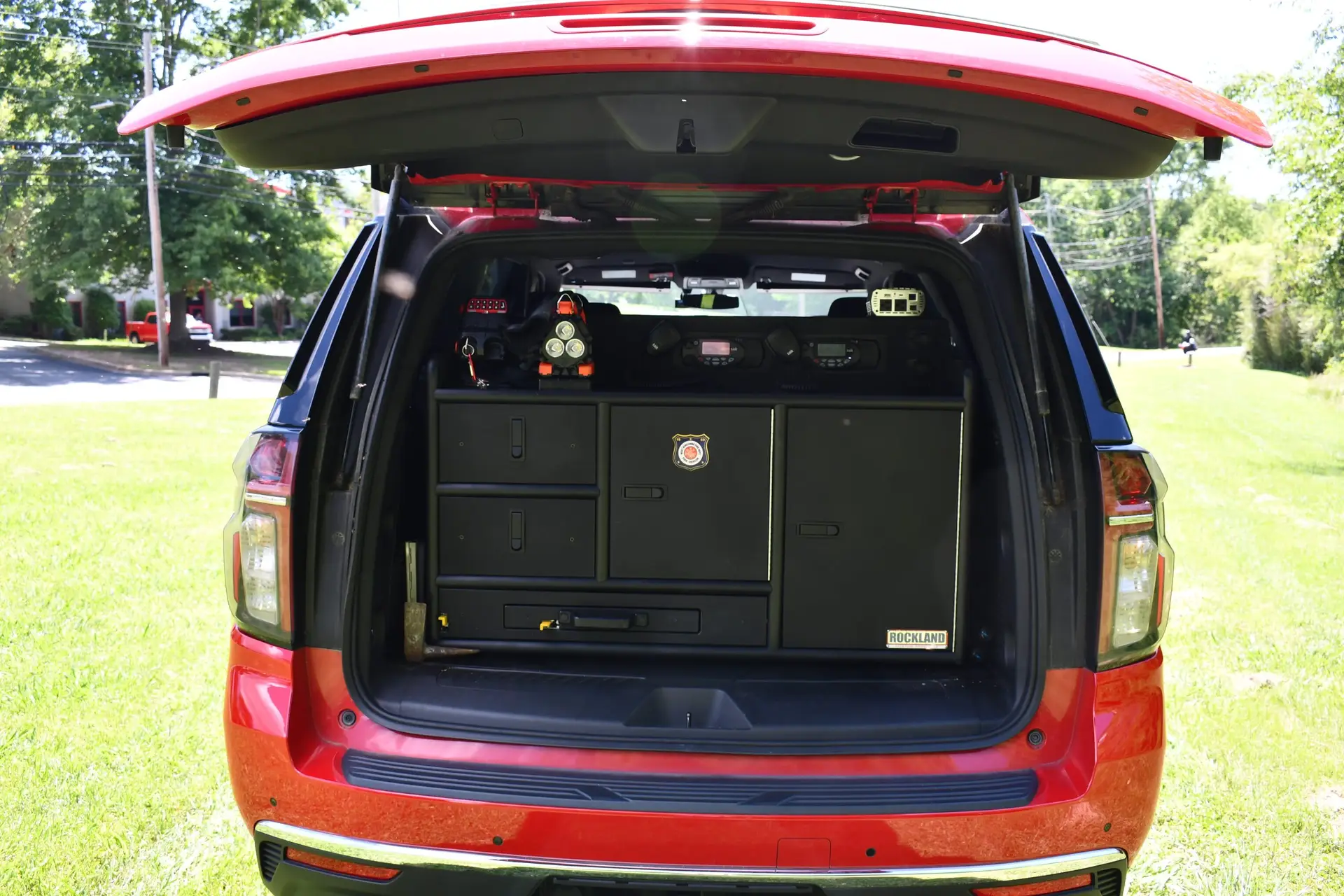 Equipped with the latest technology and communication systems, this Chevy Tahoe is designed to function as a mobile command center. It is fitted with multiple radios, computers, and a dedicated command center in the rear of the vehicle, allowing for seamless communication and incident management.