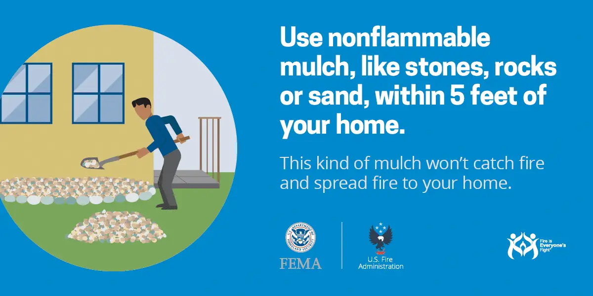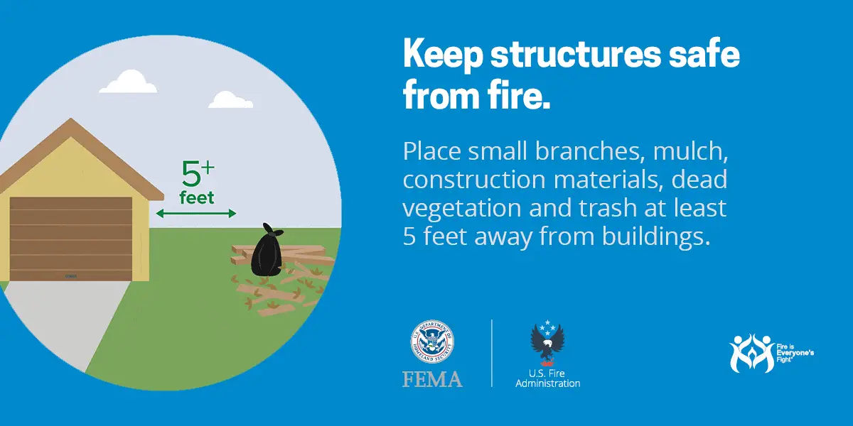 • Create a safety zone of up to 100 feet around your home. Remove pine needles and dry leaves from around your home. Keep woodpiles at least 30 feet from your home.
